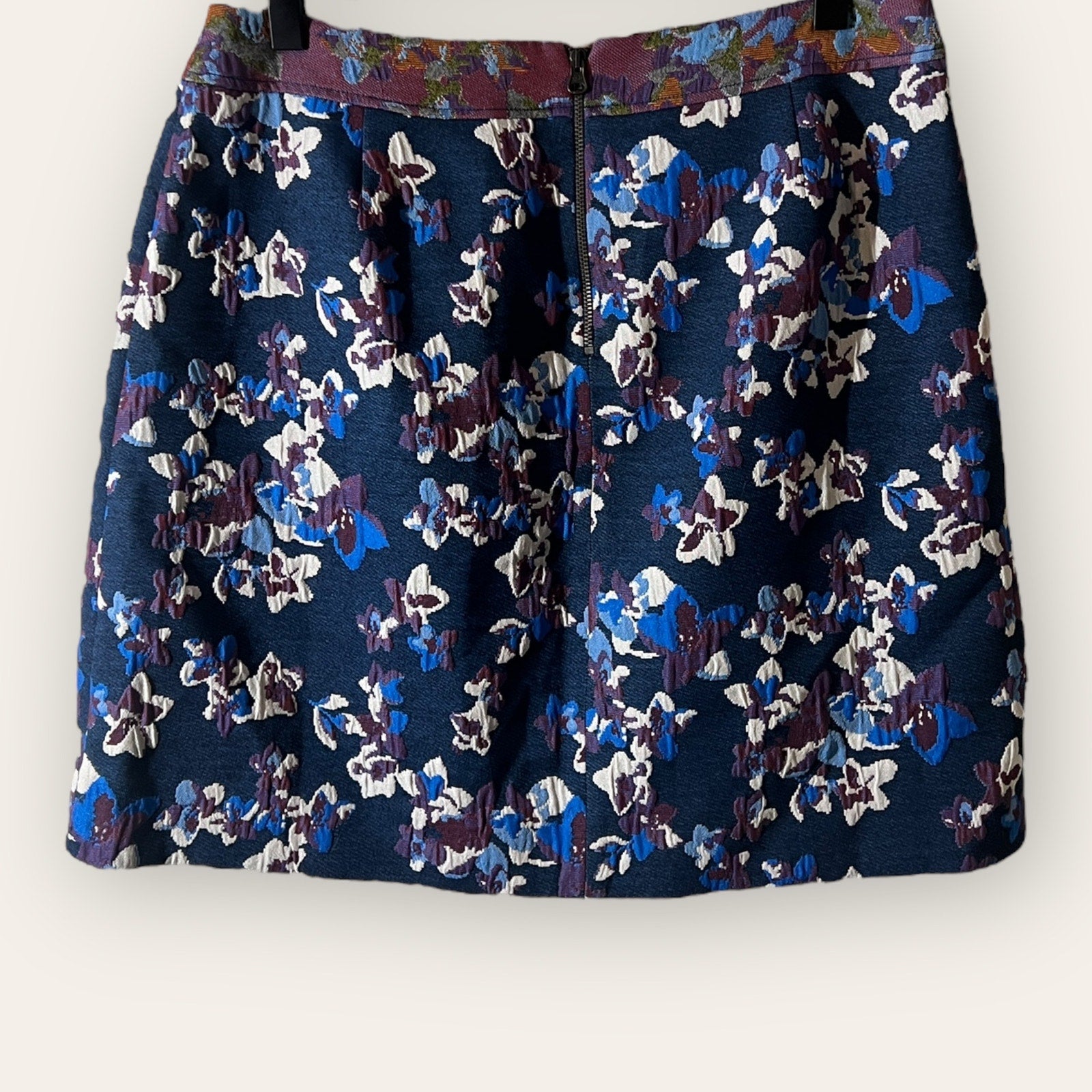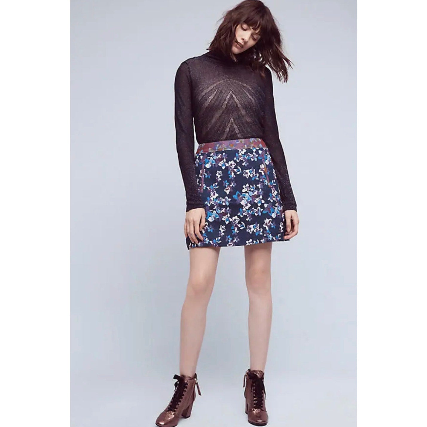 Anthropologie Cardana Maeve Blue Jacquard Floral Pencil Skirt