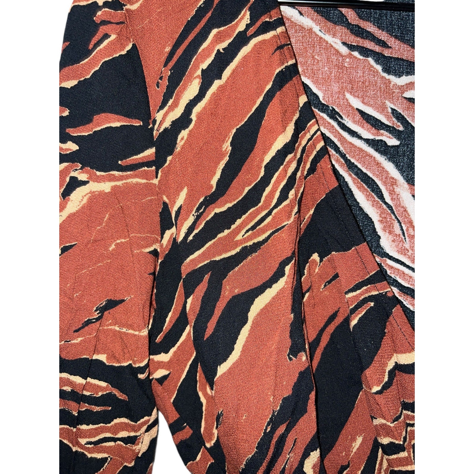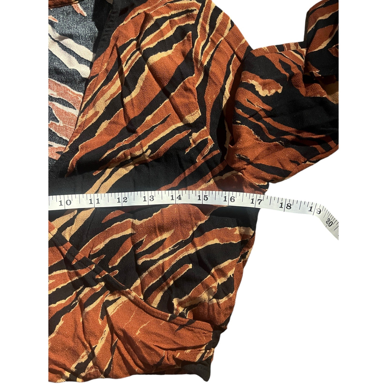 BP Long Sleeve V-Neck Brown Tiger Striped Crop Top Size S