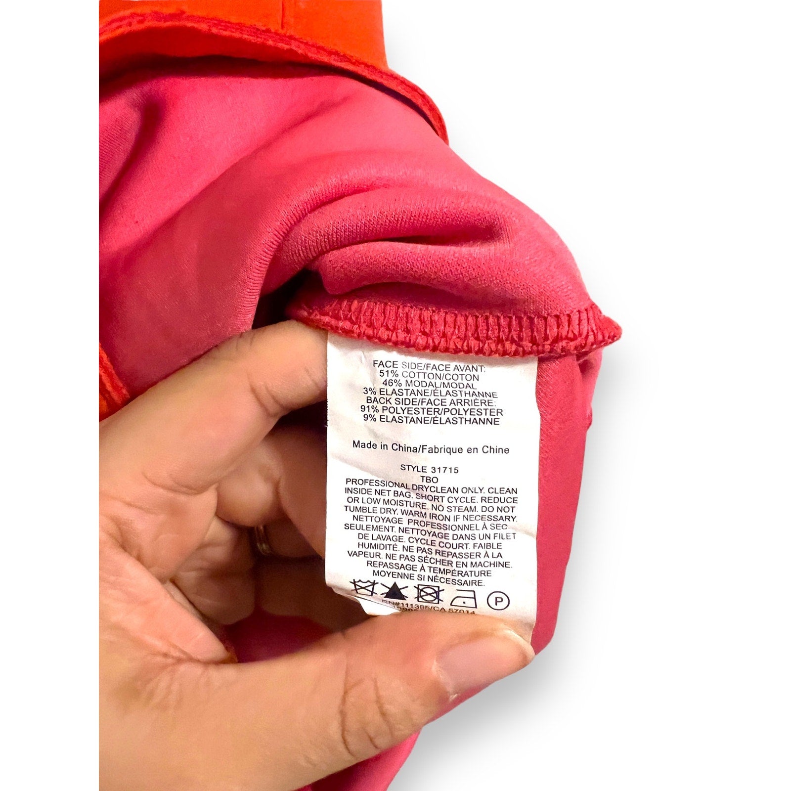 Color: Tomato Red. This red borders orange but compared to the pink in neutral white lighting; it may appear orange in warm lighting.